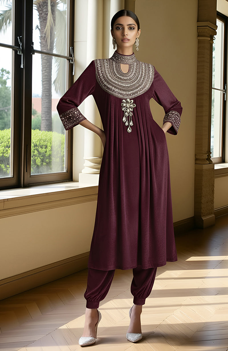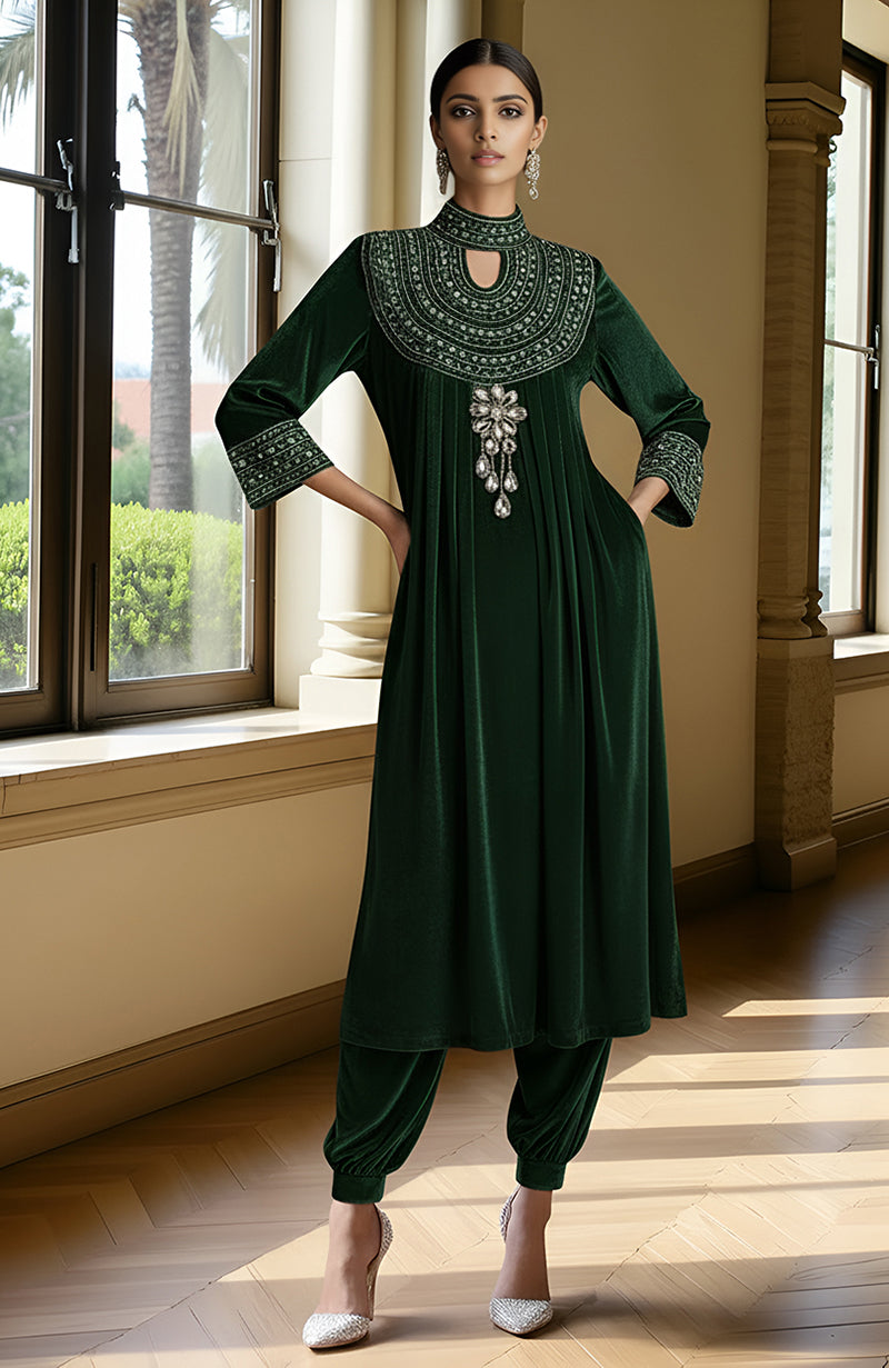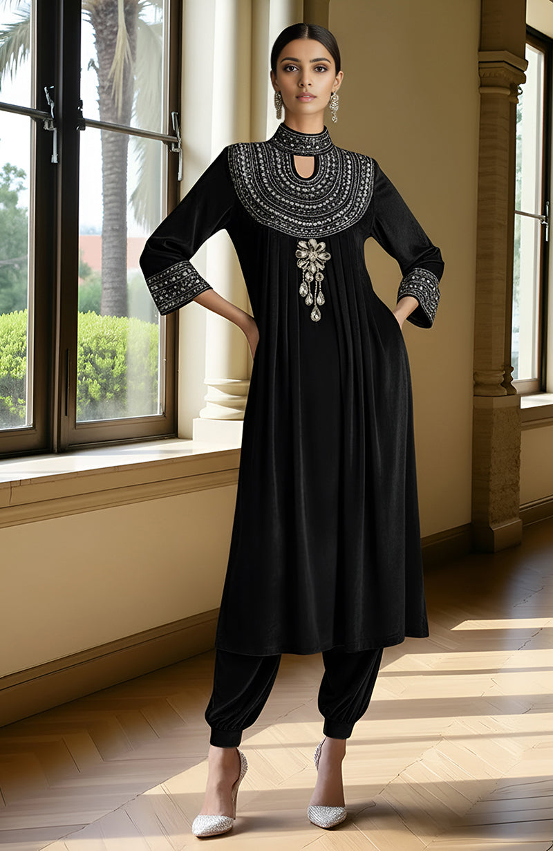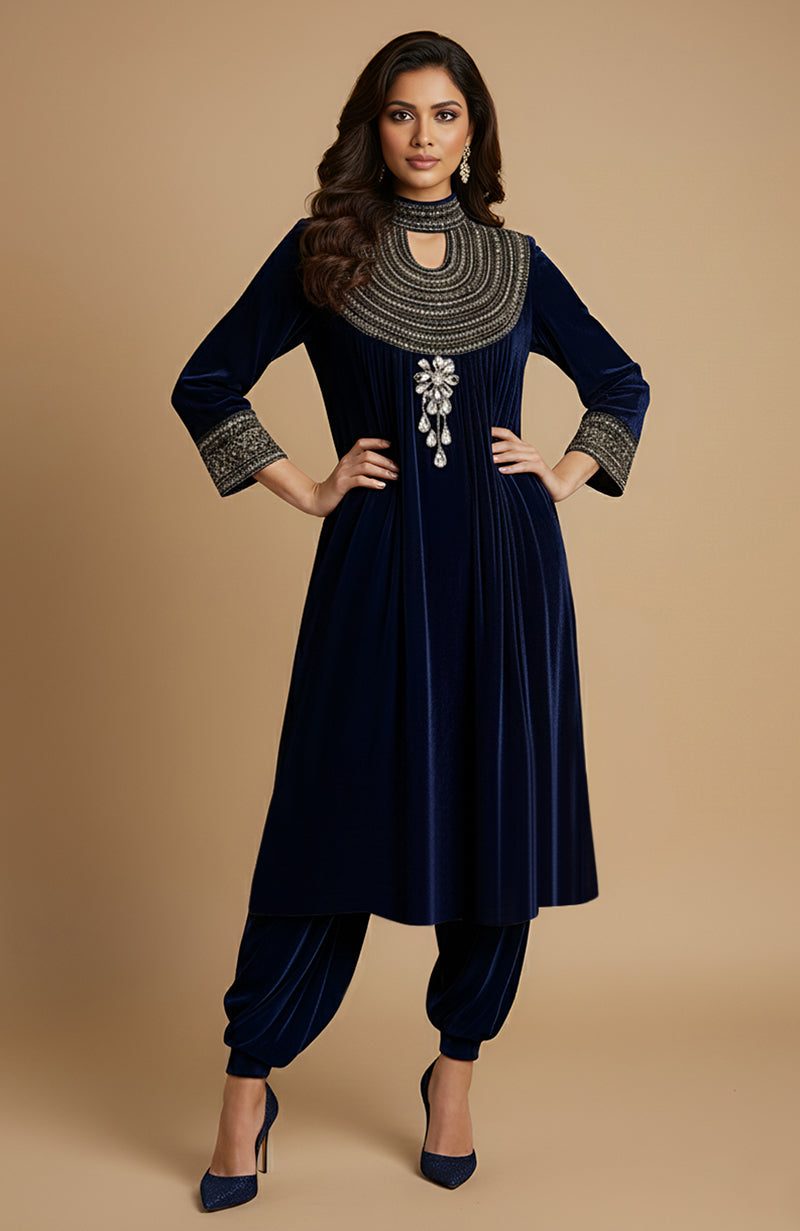 • Kurta & Lower Fabric Outer Shell: Velvet