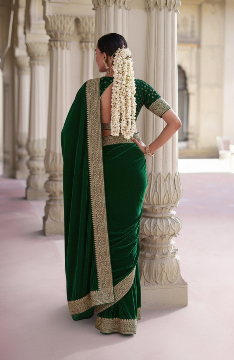 Emerald Green-Gold Zardozi Hand Embroidered Pure Silk Saree