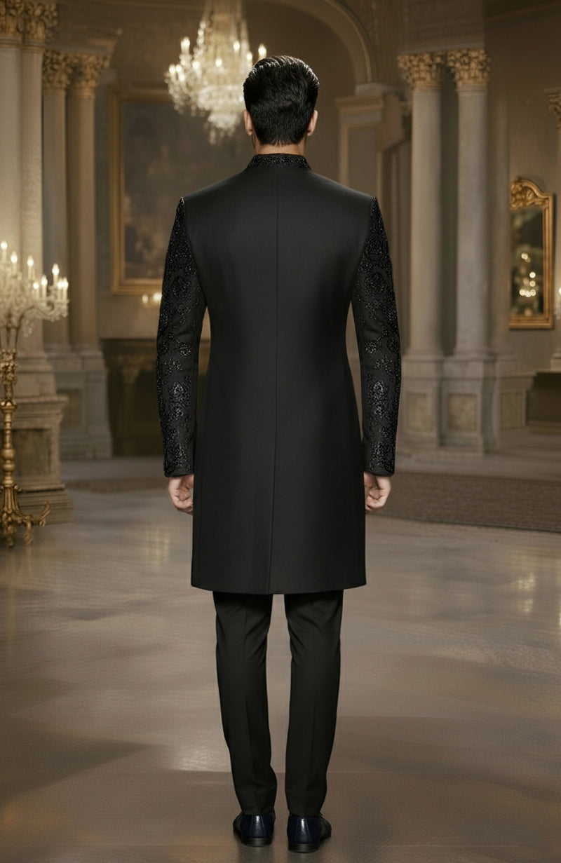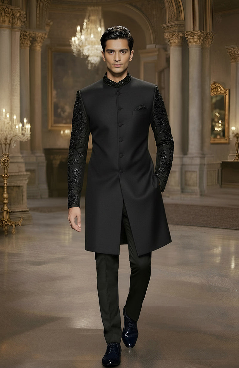 Zar Code Black Regent Embellished Sherwani Set