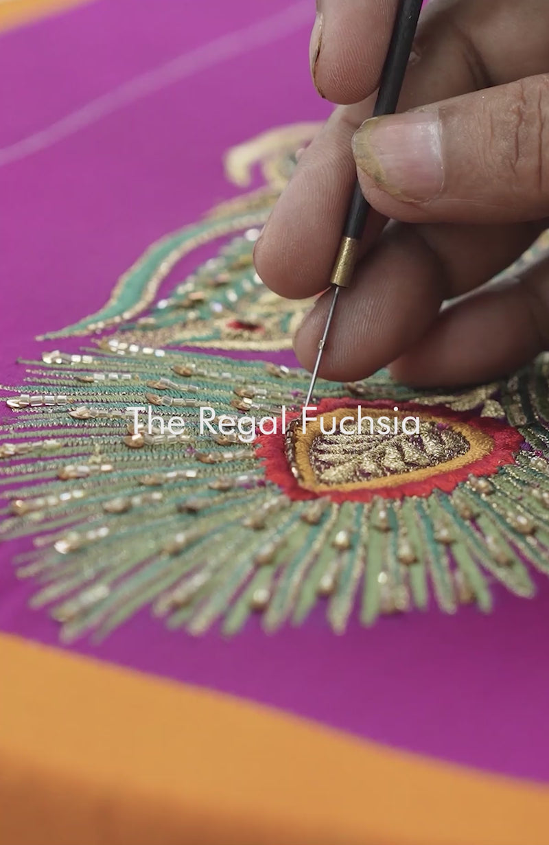 Regal Fuchsia Zardozi & Resham Embroidered Ensemble